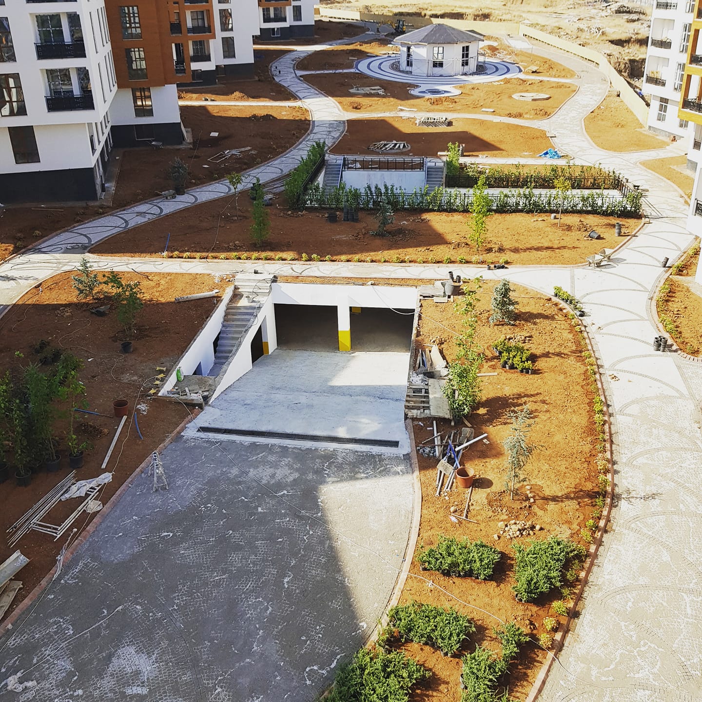 Hafriyat ve Temel: Zemin kazılır, drenaj sistemleri kurulur ve yapının yerle temasını sağlayan temel (radye, mütemadi vb.) dökülür.